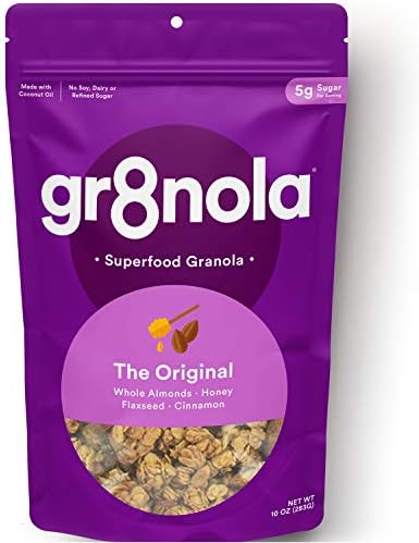Amazon Com Gr8nola The Original Cereal De Granola Saludable Con Bajo Contenido De Azucar Hecho Con Superalimentos Almendras Enteras Miel Canela Y Linaza Sin Soja Sin Lacteos Y Sin Azucar Refinado Bolsa